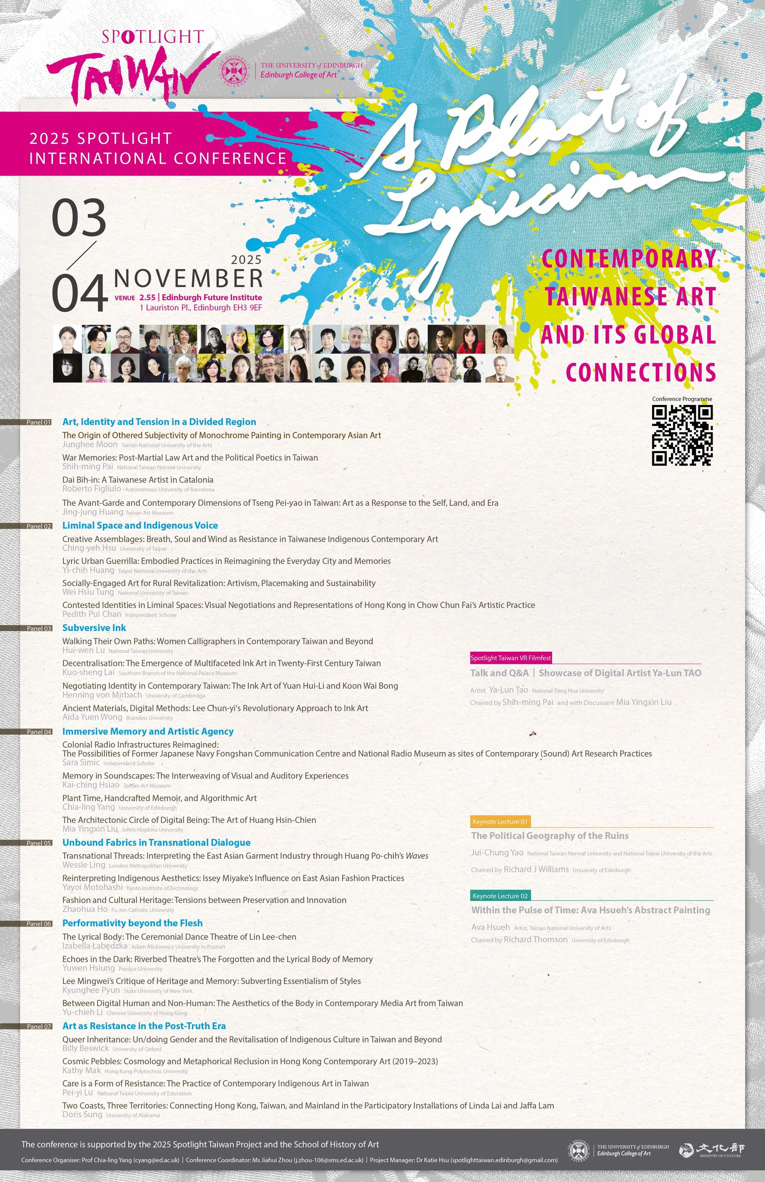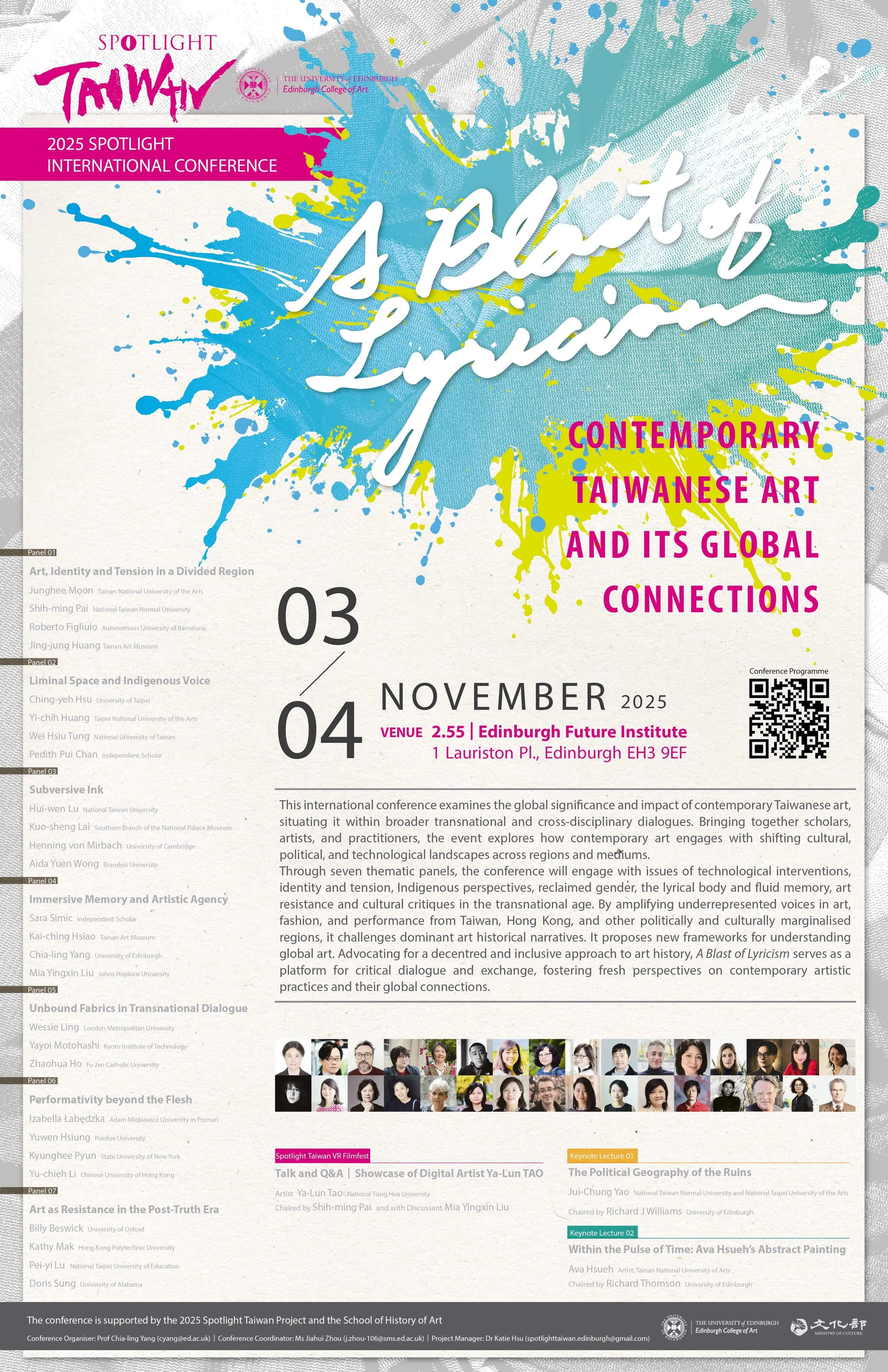 Through seven thematic panels, the conference will engage with issues of technological interventions, identity and tension, Indigenous perspectives, reclaimed gender, the lyrical body and fluid memory, art resistance and cultural critiques in the transnational age. By amplifying underrepresented voices in art, fashion, and performance from Taiwan, Hong Kong, and other politically and culturally marginalised regions, it challenges dominant art historical narratives. It proposes new frameworks for understanding global art. Advocating for a decentred and inclusive approach to art history, A Blast of Lyricism serves as a platform for critical dialogue and exchange, fostering fresh perspectives on contemporary artistic practices and their global connections.